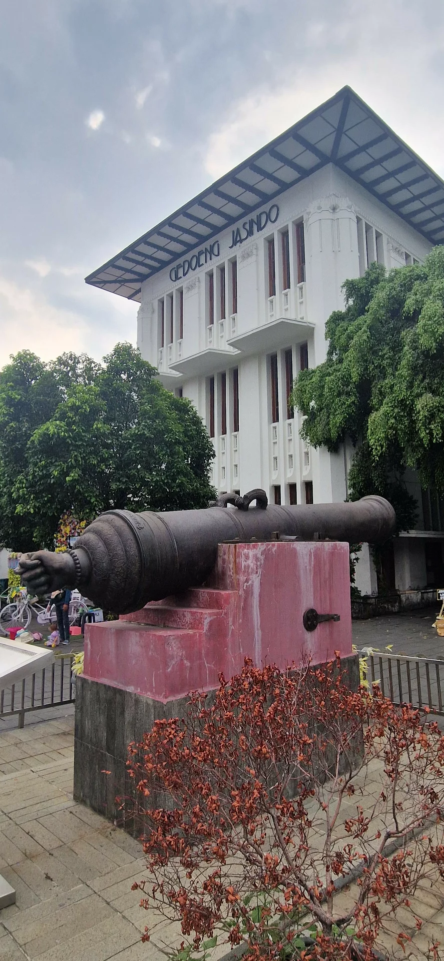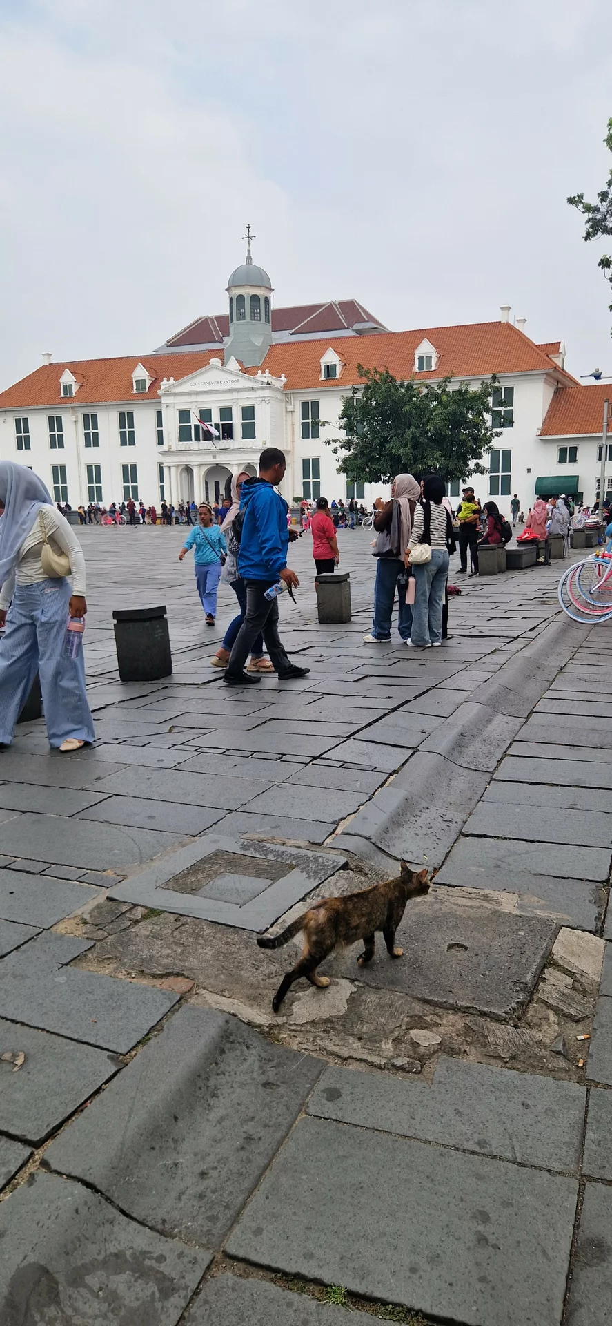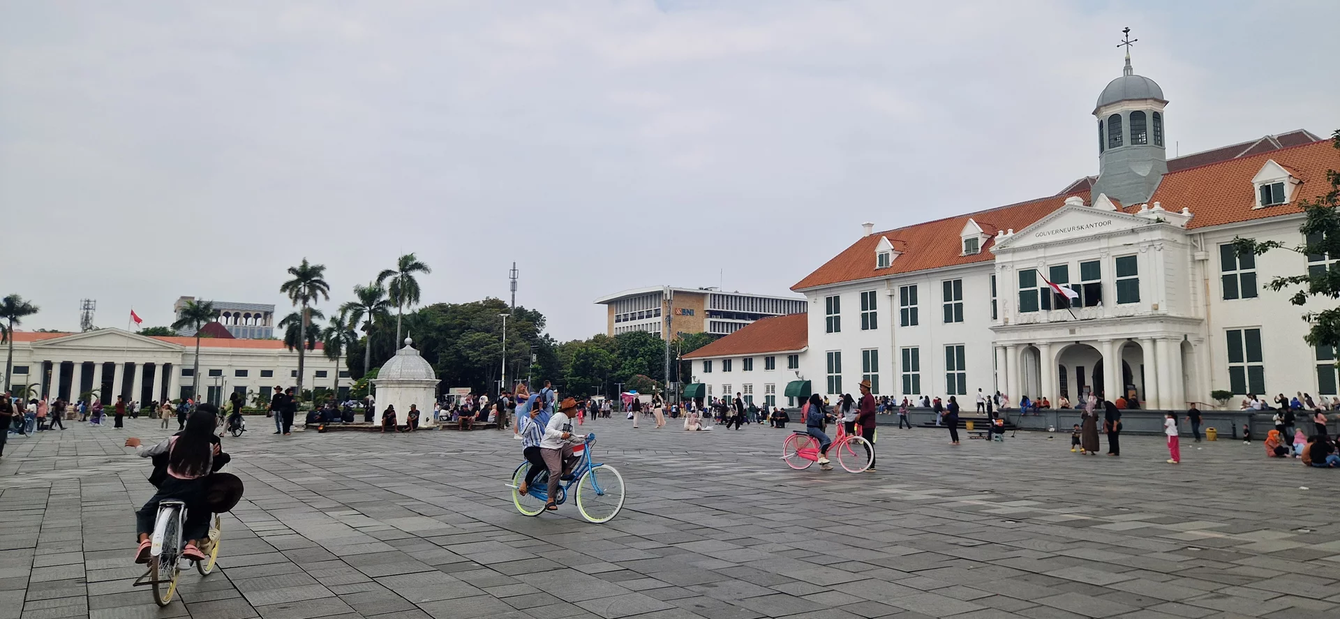 Heute prägen bunte Vintage-Fahrräder, sogenannte Sepeda Ontel, sowie die Stände der Straßenhändler das Bild. Rundherum stehen Kolonialgebäude, die heute Museen oder Restaurants beherbergen. Im Zentrum liegt ein Brunnen, der früher die Wasserversorgung der Bevölkerung sicherstellte. Einst befanden sich hier auch die Hauptkirche der Stadt, der Gerichtshof, Banken und andere bedeutende Einrichtungen. Besonders sehenswert ist das Café „Old Batavia“, das mit seiner historischen Atmosphäre fast selbst wie ein Museum wirkt.