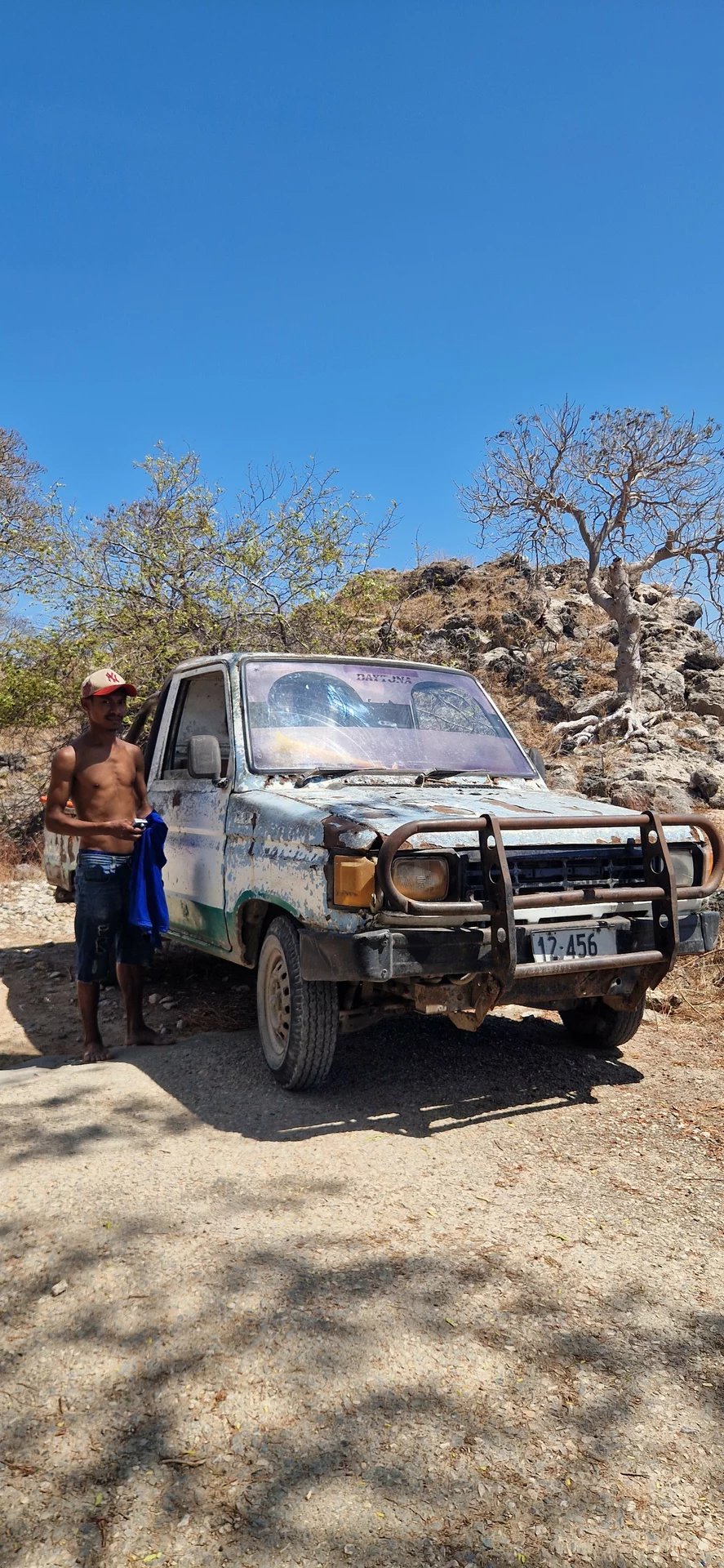 Um 6 Uhr morgens startet der Bus in das rund 450 Kilometer entfernte Dili, die Hauptstadt Osttimors. Diese Route ist die einzige Möglichkeit, die abwechslungsreiche Landschaft Timors kennenzulernen, denn Direktflüge zwischen Kupang und Dili gibt es nicht. Insgesamt dauert die Fahrt 13 Stunden.