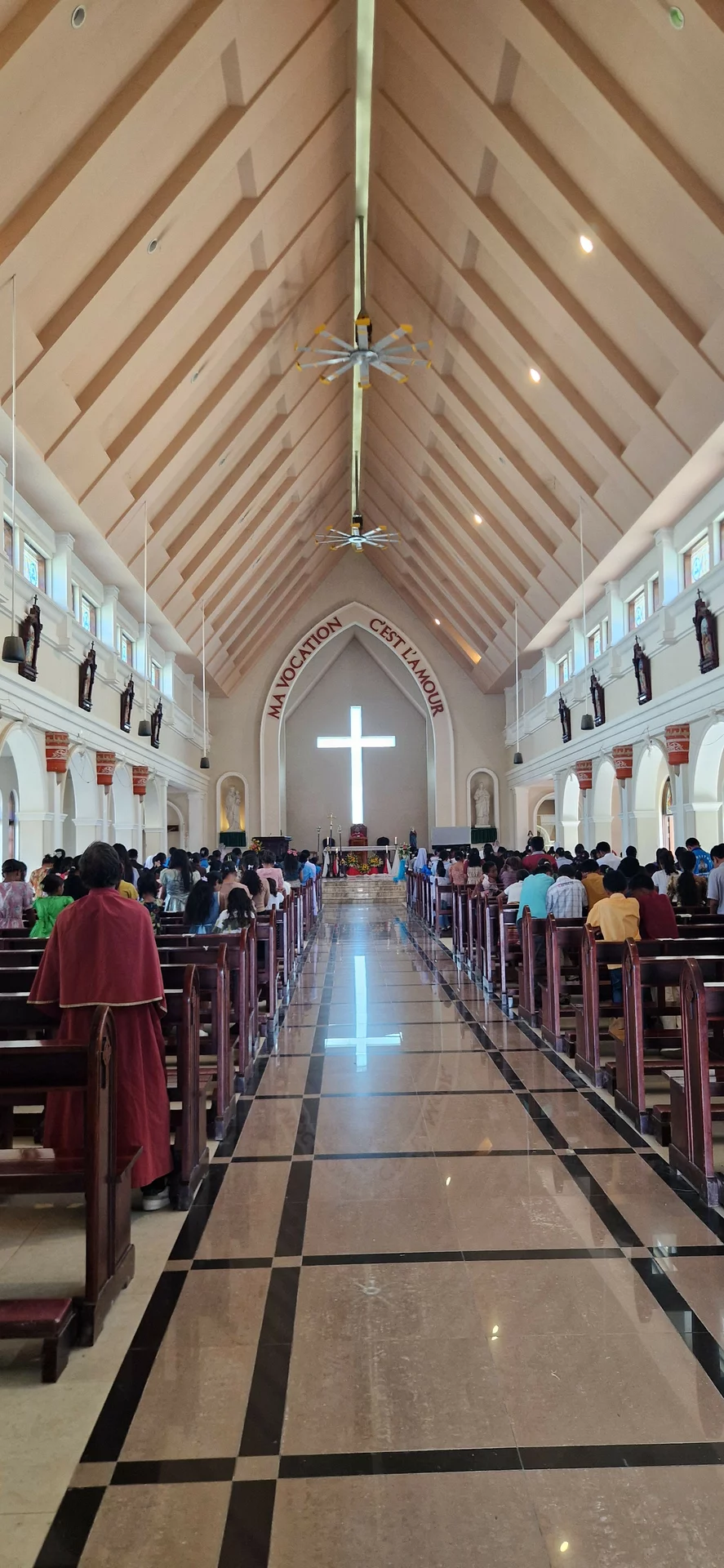 Danach bleibt Zeit für eine kleine Stadtbesichtigung: Dili bietet eine weitläufige Strandpromenade, einen portugiesischen Supermarkt und einige Denkmäler, die an die schweren Kriege erinnern. In der großen katholischen Kathedrale nehme ich am Abendgottesdienst teil.