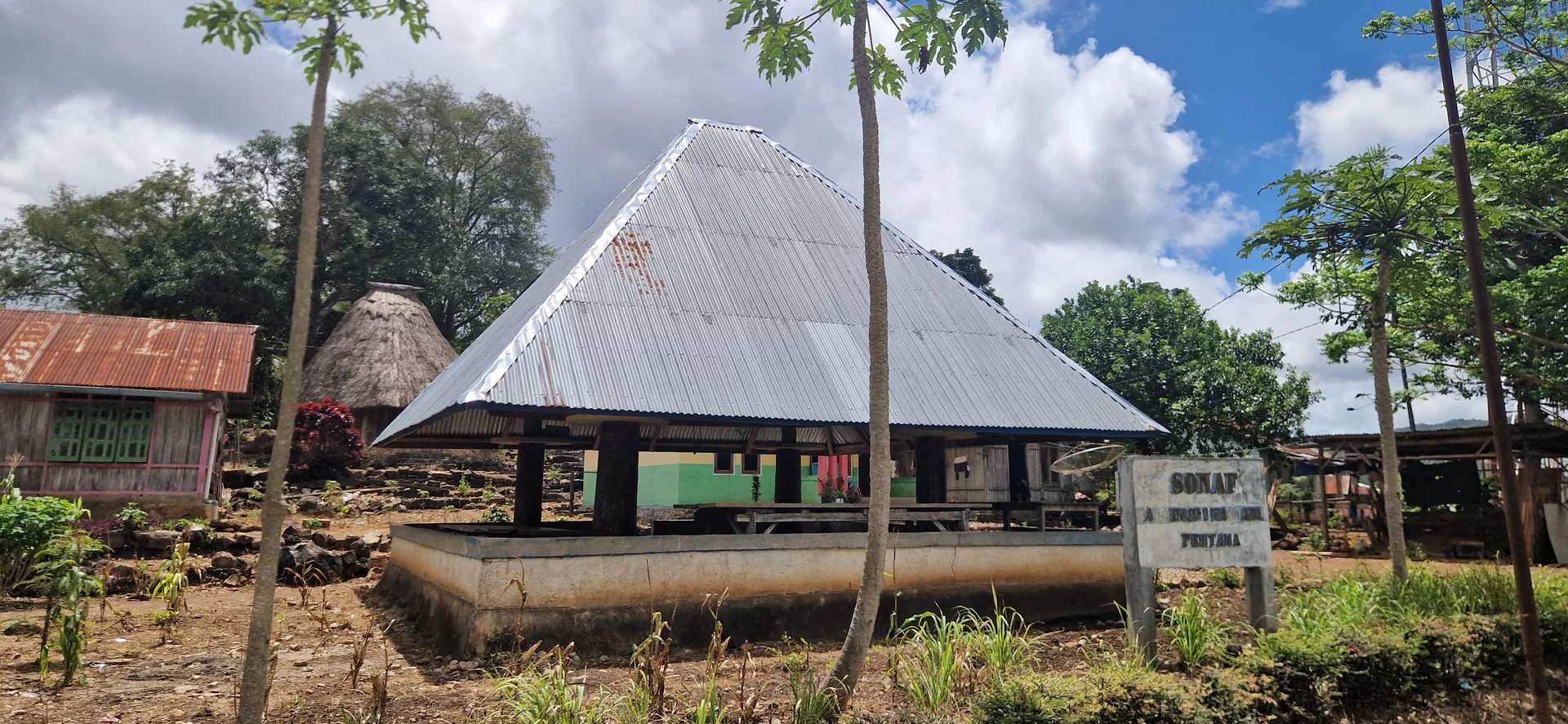 Auffällig sind die traditionellen, reetgedeckten Pavillons – Lopos genannt – die vor fast jedem Haus stehen. In moderner Ausführung sind sie mit Blechdächern versehen. Rund und spitz zulaufend, dienen sie als Versammlungsorte, Kochstellen, Schutz bei Regen oder einfach zum Plaudern.