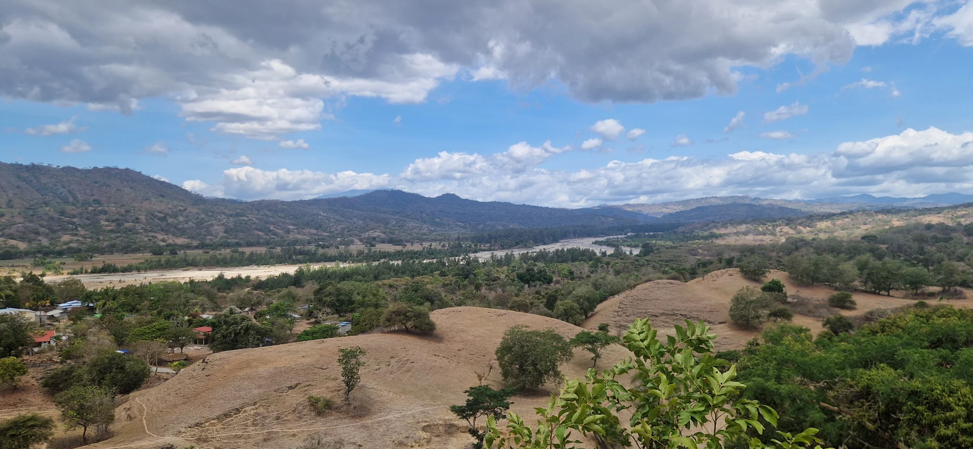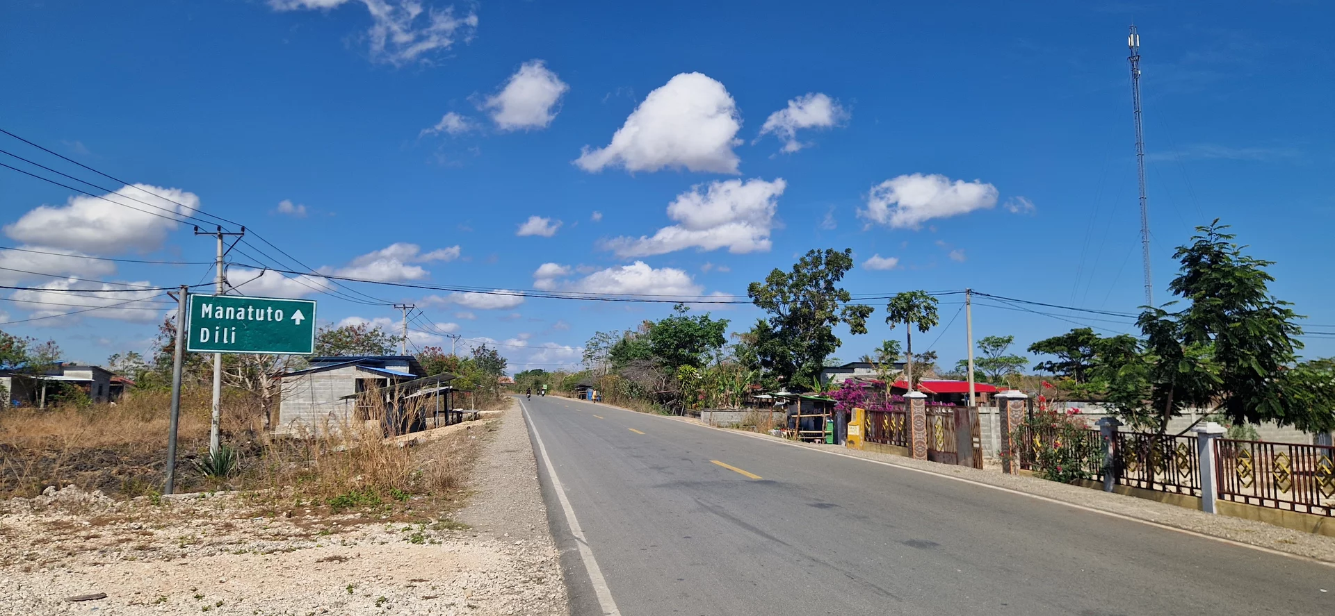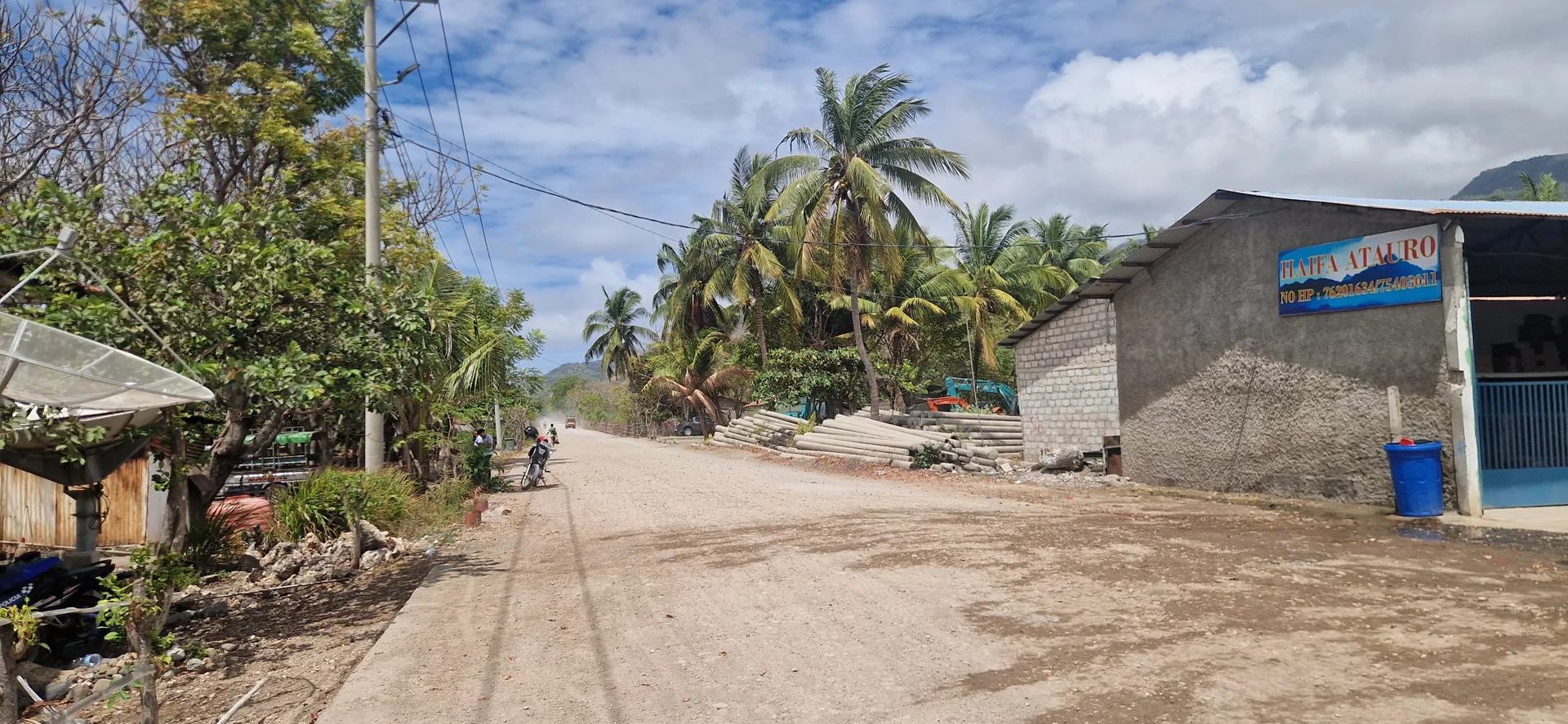 Heute geht es ins Landesinnere nach Viqueque, fast bis an die Südküste. Für die knapp 65 Kilometer benötige ich fast drei Stunden: Die Straße ist zwar teilweise asphaltiert, doch immer wieder wechseln sich lange Abschnitte ohne Belag ab – eine regelrechte Buckelpiste, die nur langsames Fahren erlaubt.